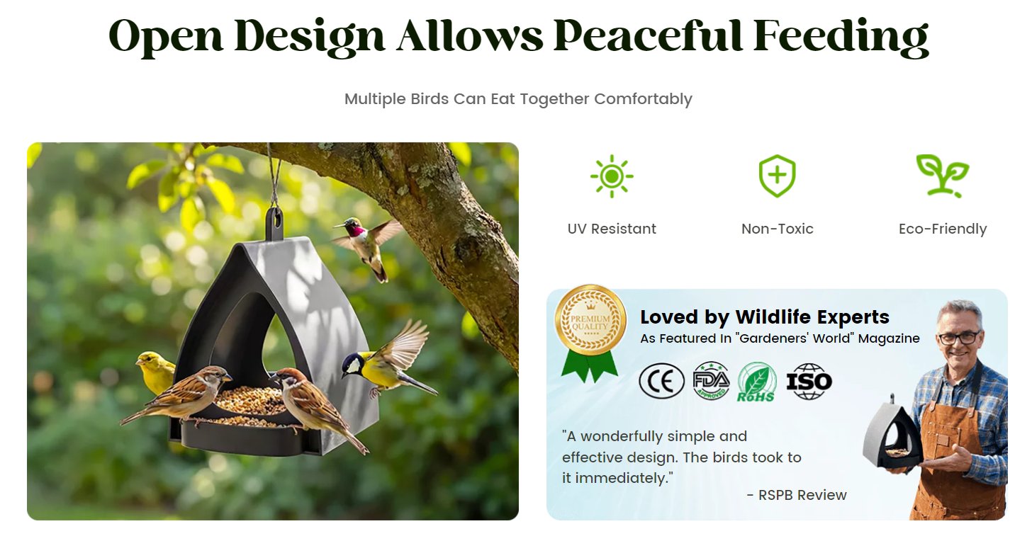 OPEN-SIDED DESIGN - Provides easy access for multiple birds to feed at once and offers you an unobstructed view, making it perfect for bird watching from the comfort of your home.